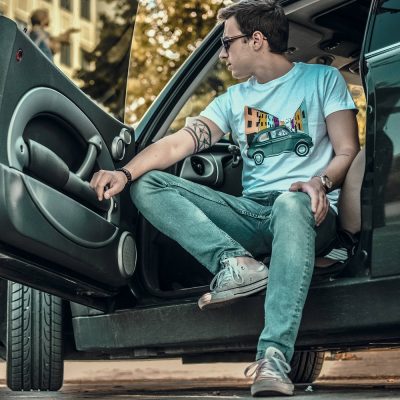 Новата колекција на маици наменета за мажи, прикажана на урбан едиторијал низ скопските улици.