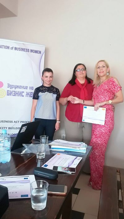 Изминатите три дена беа реализирани последните три завршни настани во рамки на проектот „Креирање на поволен деловен амбиент и обезбедување подобра системска поддршка на претпријатијата во сопственост на жени“, финансиран од Европската Унија, кој Здружението на бизнис жени го спроведува како субгрантист во рамки на проектот „Јакнење на капацитетите и механизмите за поддршка на реформскиот процес на Поглавје 20 (ЈЕСНетворк+)”. На 24 јули во ресторан Глориус во Велес, на 25 јули во ресторан Клуб во Куманово и на 26 јули во Салата на советот на Општина Битола, се одржaa завршните настани, во присуство на сите учесници во проектните активности.