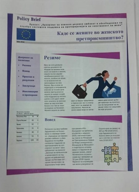 Освен презентација на реализираните активности на проектот и постигнатите резултати, од страна на Здружението на бизнис жени, со свој осврт и збор се обратија и претставници на општините и од центрите за вработување. Од страна на имплементаторот пренесени беа добиените сознанија, импликации и препораки, а беше претставен и изготвениот Документ за политики (Policy Brief) произлезен од реализација на сите активности.