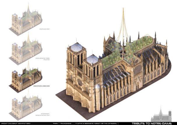 По разорниот пожар кој уништи голем дел од француската катедрала Нотр Дам минатиот месец, локалната компанија Vincent Callebaut Architectures ја претстави својата визија за реставрацијата на овој културен споменик со главен фокус на одржливоста на новата градба