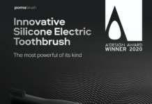 Ова е PomaBrush, моќна силиконска електрична четка за заби. Откако ќе ја употребите и нежно ќе ги исчистите забите, ја враќате четката во нејзината...
