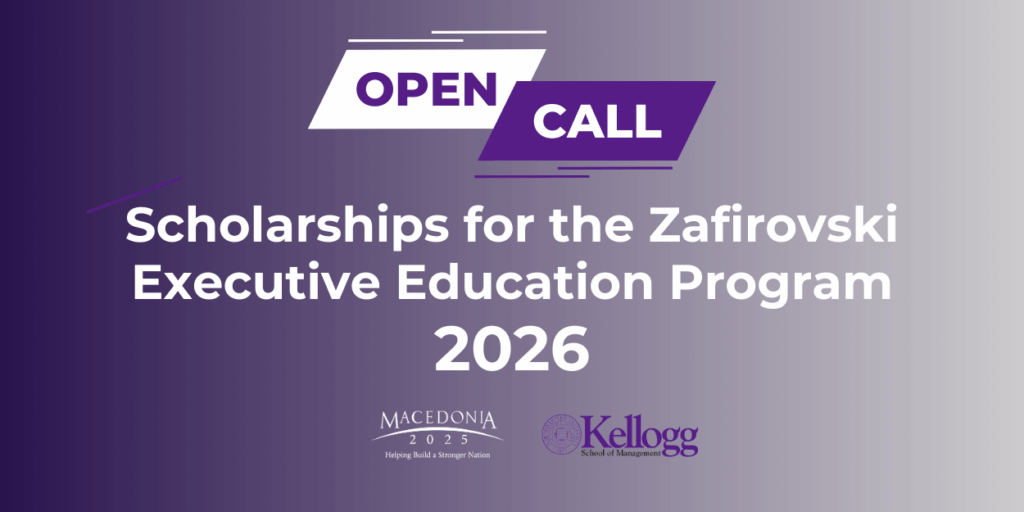 Македонија2025 ве информира за два активни повика за апликации за стипендии за 2026 година, насочени кон менаџери, бизнис лидери и претприемачи од Македонија кои сакаат да го надградат своето знаење и лидерски капацитети преку врвни меѓународни извршни програми.