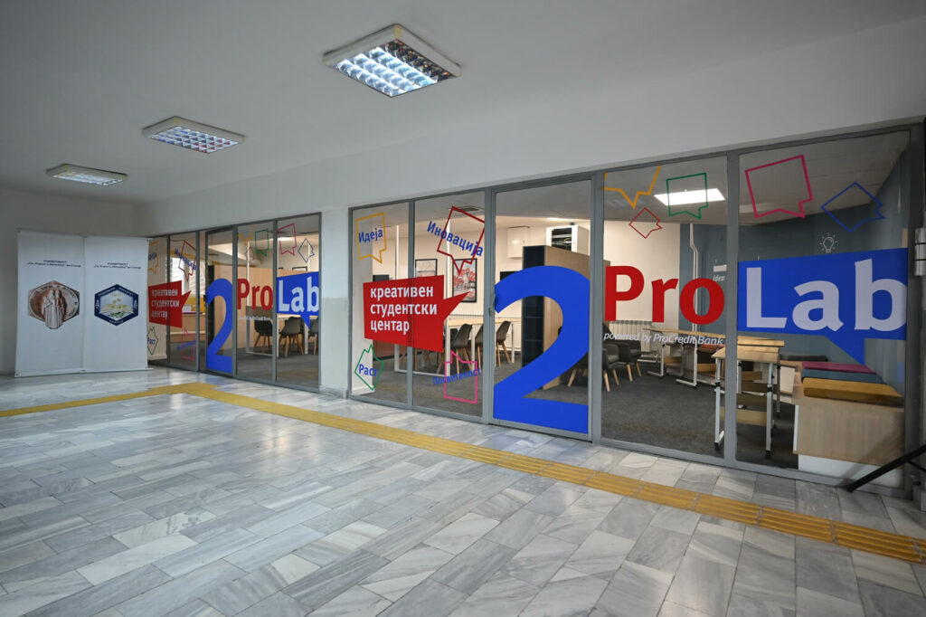 На свечениот настан за отворање на ProLab свое обраќање имаа ректорката на Универзитетот „Св. Кирил и Методиј“ во Скопје, проф. д-р Биљана Ангелова, деканот на Економскиот факултет – Скопје, проф. д-р Мијалче Санта и член на Управниот одбор на ПроКредит Банка, г-дин Милан Дамчевски, со свечено пресекување на црвена лента и презентација на функциите и намената на ProLab како иновативен простор за студентска креативност, практична работа и соработка.