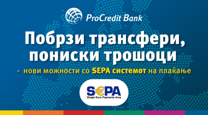 ПроКредит Банка АД Скопје од денес ќе овозможи брзи, сигурни и поволни евро-трансфери, благодарение на своето приклучување кон SEPA (Single Euro Payments Area – Единствена област за плаќања во евра).