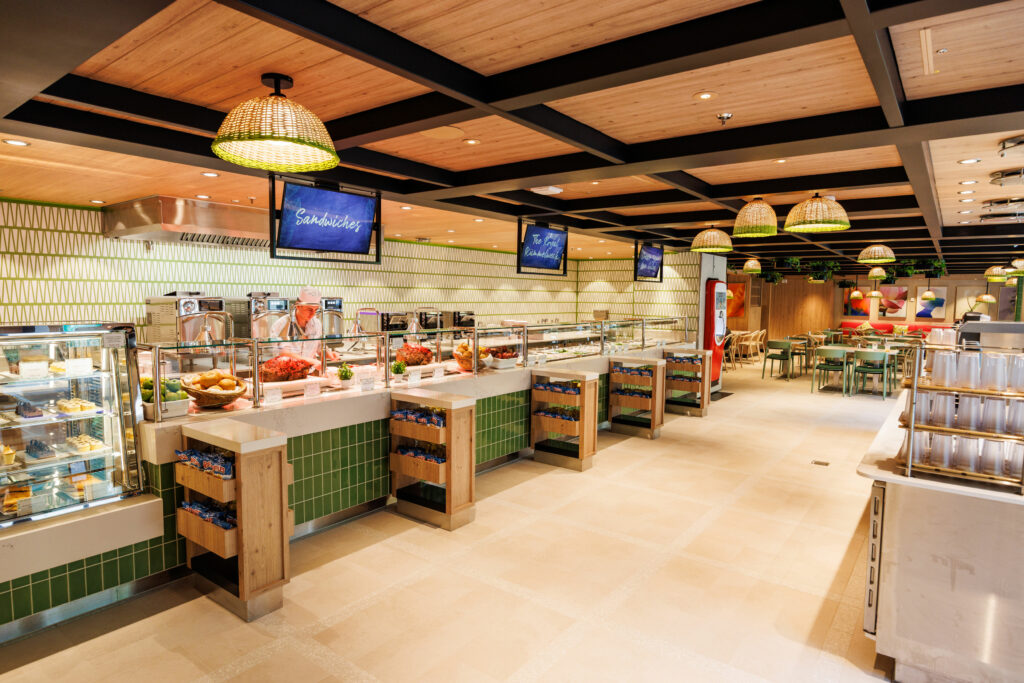 Во јавните простори на бродот се поставени и ултра-тенки UHD дисплеи од серијата QMC, кои прикажуваат високорезолуциска содржина – од информации и најави, до промотивни видеа и програмски содржини – и при тоа го користат просторот максимално ефикасно. Овие паметни дисплеи обезбедуваат јасни и привлечни визуели во лоунџ-зоните, чекалните, театарските сали и другите заеднички простори.