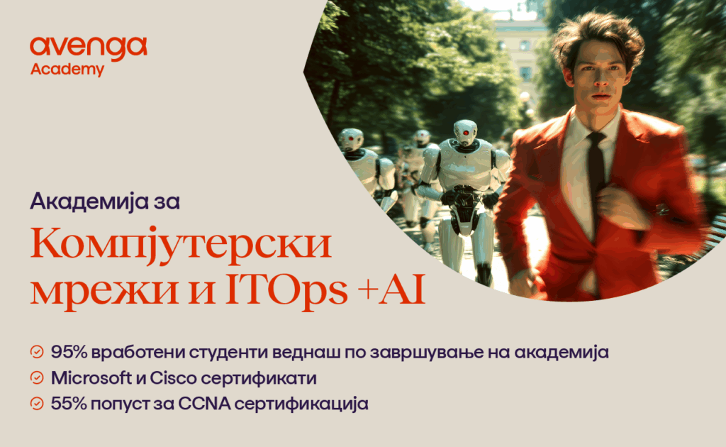 Доколку сакаш да ја започнеш кариерата во една од најстабилните ИТ гранки – мрежите и ITOps разгледајте ја програмата од Академијата за компјутерски мрежи и IT операции (ITOps) на Avenga Academy.