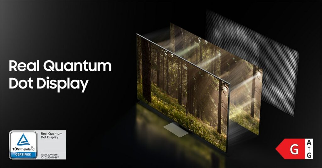 За да разбереме зошто сликата на најновите Samsung екрани изгледа речиси хипер-реалистично, мора да навлеземе повеќе во светот на нано-технологијата. Samsung беше пионер во препознавањето на потенцијалот на квантните точки, започнувајќи ги истражувањата уште во 2001 година. Повеќе од две децении подоцна, со над 150 регистрирани патенти, денес технологијата е сертифицирана како вистински дисплеј со квантни точки (Real QD) според строгите IEC стандарди. Користејќи лист со квантни точки и сина LED диода, без кадмиум, Samsung постигнува 100% волумен на боите според DCI-P3 стандардот. Овие ултра-фини полуспроводнички честички, десет илјади пати потенки од човечко влакно, овозможуваат беспрекорна прецизност на боите кога светлината поминува низ нив. Во пракса, ова значи дека црвената боја е навистина црвена, а не бледа нијанса на портокалова, создавајќи спектар кој е идентичен со оној што го гледаме во природата.