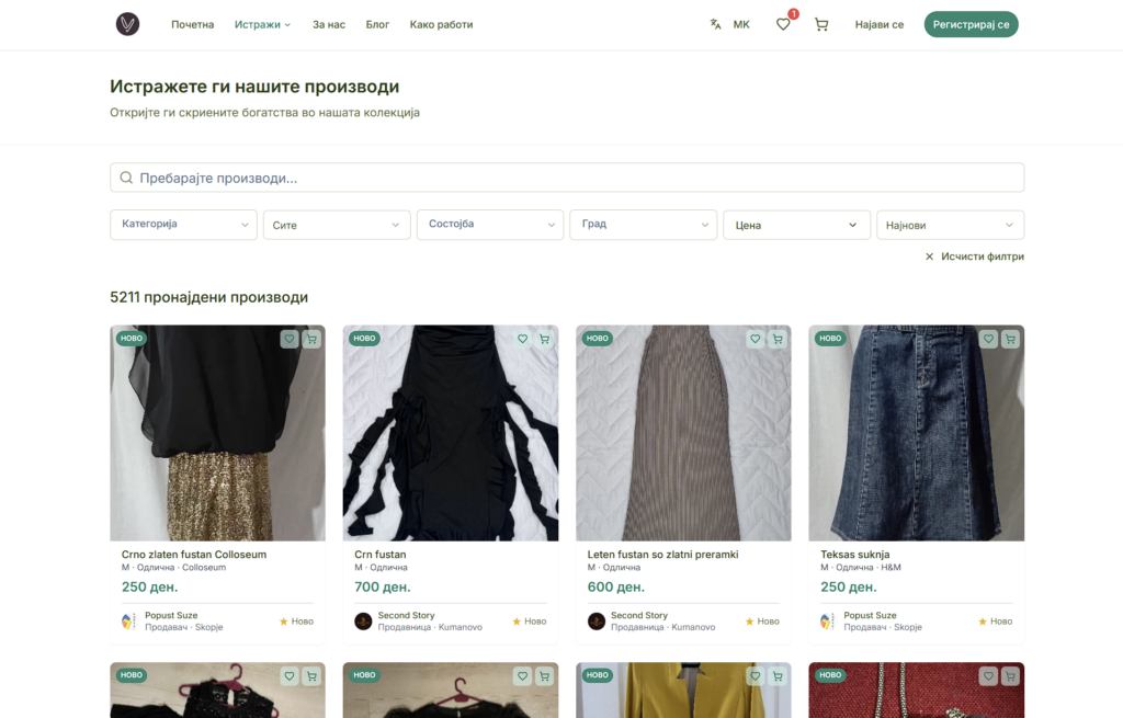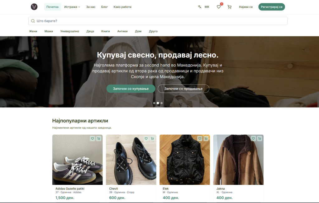 На Vinstreet има сè… од секојдневни фармерки и палта, до брендирани парчиња, винтиџ јакни, чанти, детска облека. Има девојки што продаваат парчиња од својот гардеробер што одлучиле дека веќе не се за нив, има мали second hand продавници, има луѓе што едноставно не сакаат да фрлаат. За мене ова не е само marketplace. Ова е обид да покажеме дека можеме да консумираме поразумно. Наместо да купуваме и фрламе, можеме да ја разменуваме и да го продолжуваме животниот циклус на облеката. Мал чекор, но реален.