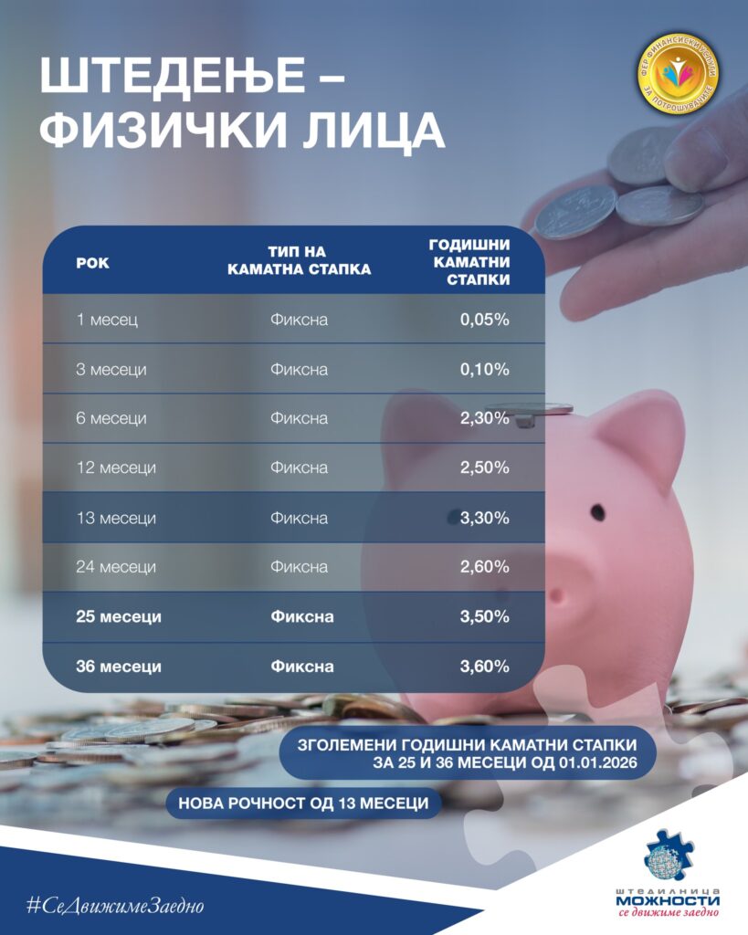 За нас е особено значајно што воведувањето депозитни производи за правни лица се надоврзува на довербата што веќе 25 години ни ја укажуваат штедачите. Голем број клиенти во изминатиот период ја препознаа Штедилницата како сигурно место за своите заштеди, а таа доверба е најсилната потврда за нашата стабилност, одговорност и посветеност кон клиентите. Токму затоа, и понатаму ќе продолжиме да развиваме производи кои се едноставни, сигурни и прилагодени на реалните потреби на граѓаните и бизнисите.