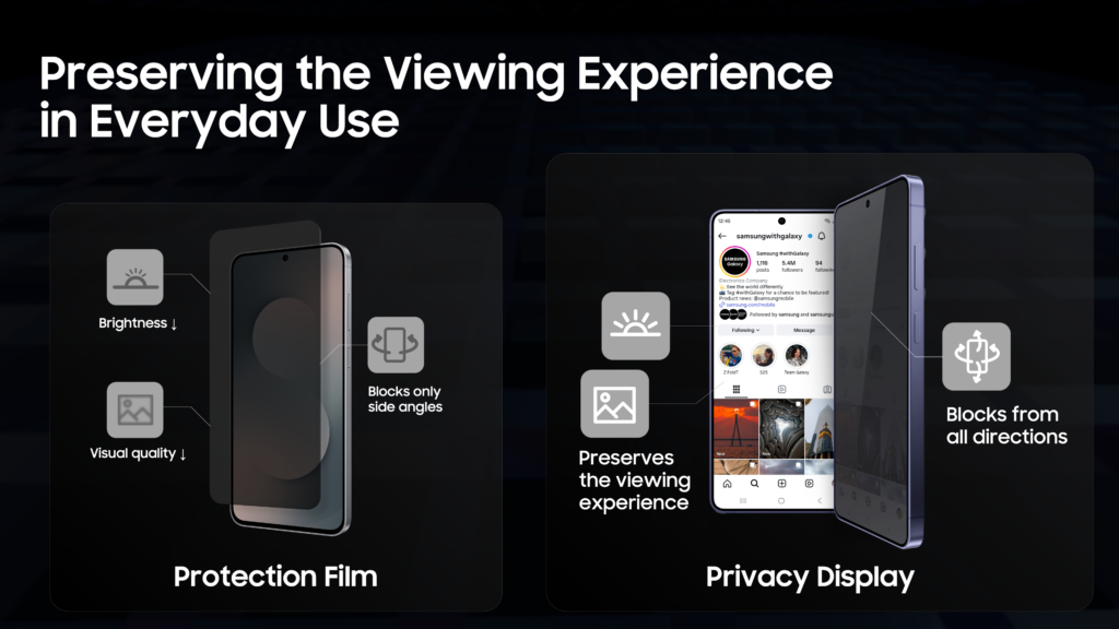 Со Privacy Display на Samsung Galaxy S26 Ultra, покрај овие разумни навики за зачувување на приватноста, луѓето добиваат нова алатка за заштита на нивните информации,. Приватноста долго време е во фокусот на “Samsung”, а Privacy Display претставува најнов чекор во помагањето на луѓето да ги зачуваат своите лични информации во моментите што се важни, поддржано со седум години безбедносни ажурирања за долгорочна заштита.