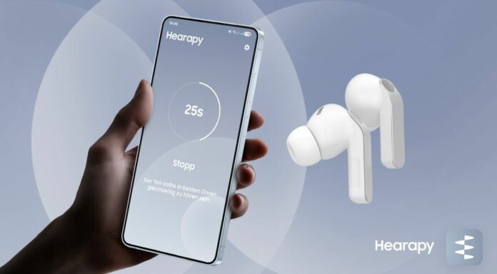 Бесплатната апликација Hearapy го репродуцира научно докажаниот бас тон преку вашиот Galaxy паметен телефон. Вградениот тајмер го обезбедува точното времетраење од 60 секунди, додека контролата на јачината на звукот го поставува нивото на 85 децибели. Тоа е отприлика исто толку гласно како косилка.