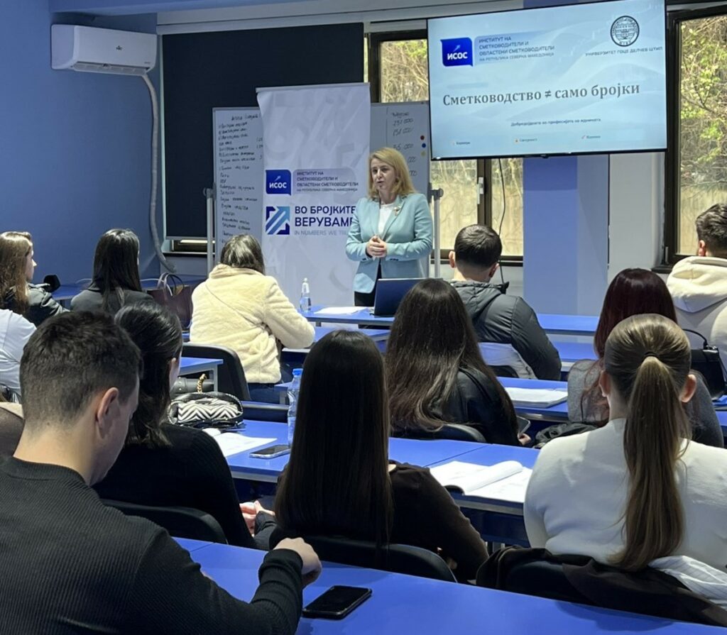 Во рамки на меморандумот за соработка со Универзитетот „Гоце Делчев“ – Штип, претседателката на ИСОС Прентоска одржа и гостинско предавање на студентите од катедрата за сметководство и ревизија.