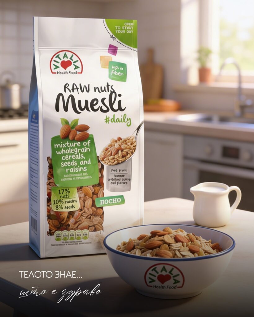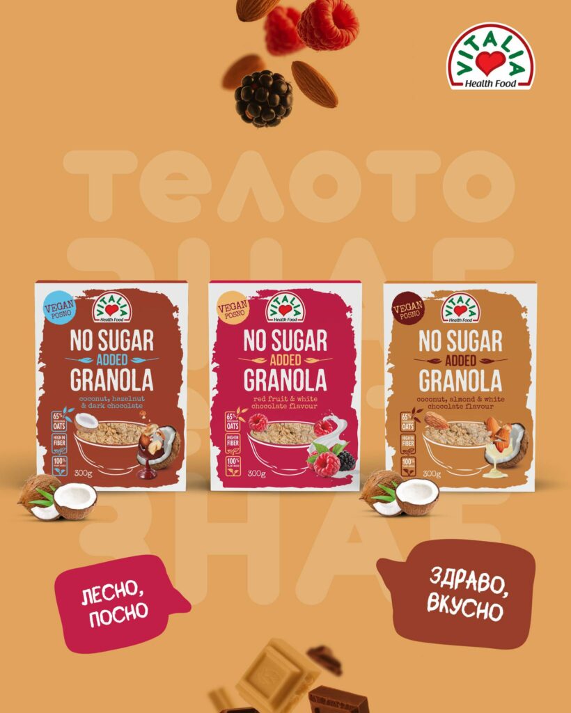 Како бренд кој повеќе од три децении стои зад здравите навики, Виталиа нуди многу повеќе од прехранбени производи, нуди комплетно решение за здрав животен стил. Портфолиото опфаќа широк спектар производи од гранола, мусли и овесни каши, до иновативни солени и слатки намази, како и протеински производи. Сите тие се создадени да одговорат на современите потреби на потрошувачите за вкусен, практичен и нутритивно вреден оброк или ужина, без компромис.