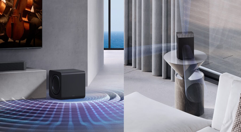 Системот ја проширува стерео сликата, обезбедувајќи фокусиран централен вокал, додека им овозможува на инструментите да “дишат” на поширока сцена. Користењето на режимот “Adaptive Sound“ осигурува вештачката интелигенција да го оптимизира балансот врз основа на жанрот.