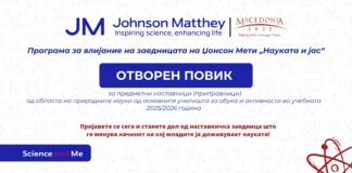 Македонија2025, во рамки на Џонсон Мети Програмата за поддршка на заедницата„Науката и Јас“, го објавува новиот повик за предметни наставници по природни науки (природни...